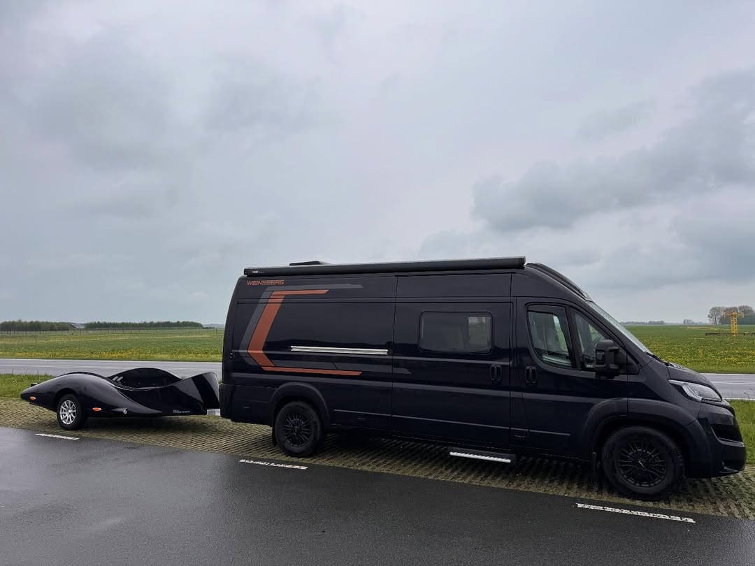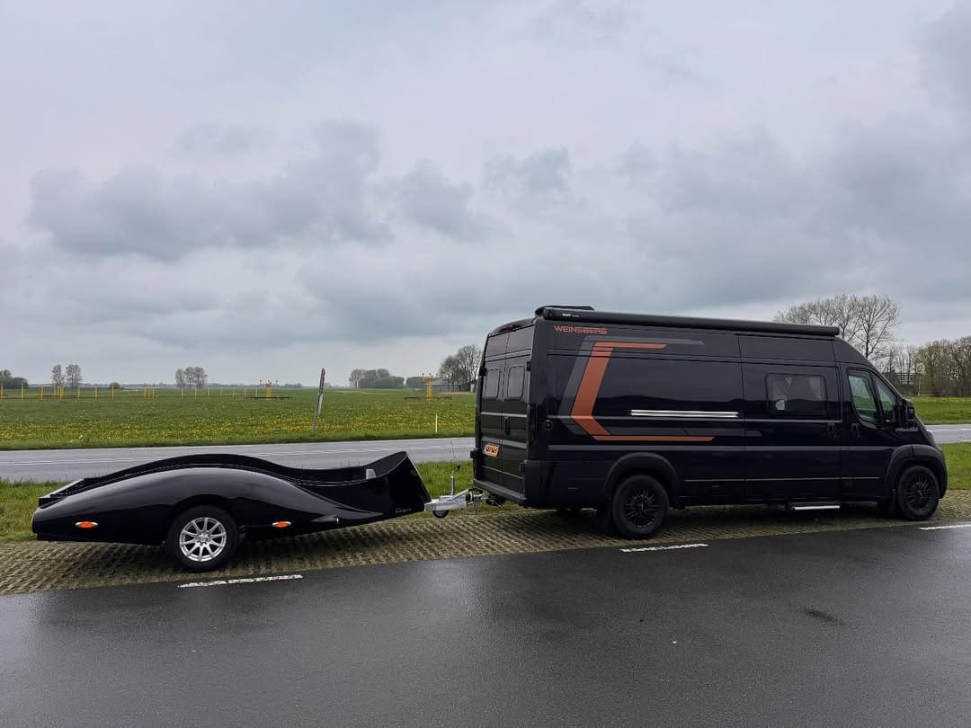 Задній гвинтовий упор, виготовлений із гарячеоцинкованої сталі з функцією домкрата, закріплює причіп під час посадки та висадки з мотоцикла, а також піднімає задню частину причепа достатньо високо, щоб замінити пошкоджену шину. Обмежувач піднімається та опускається вручну за допомогою затискача (входить до комплекту постачання) або за допомогою електричної викрутки.